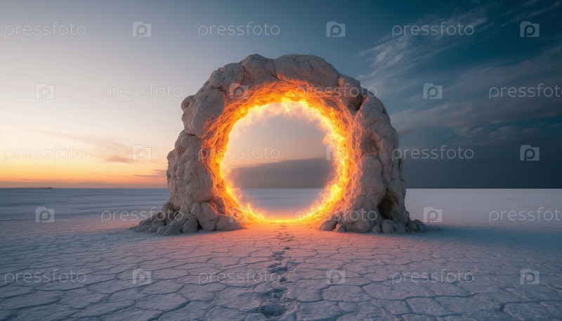 Светящийся портал посреди белой пустыни - футуристический пейзаж