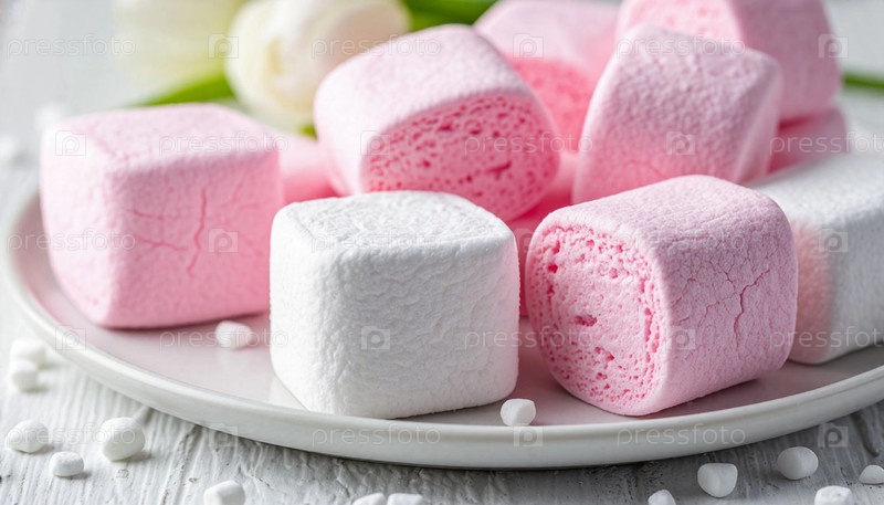 Сгенерированный искусственным интеллектом белый и розовый зефир