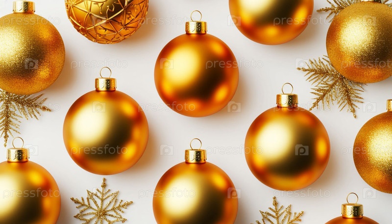 Золотые рождественские шары на белом фоне