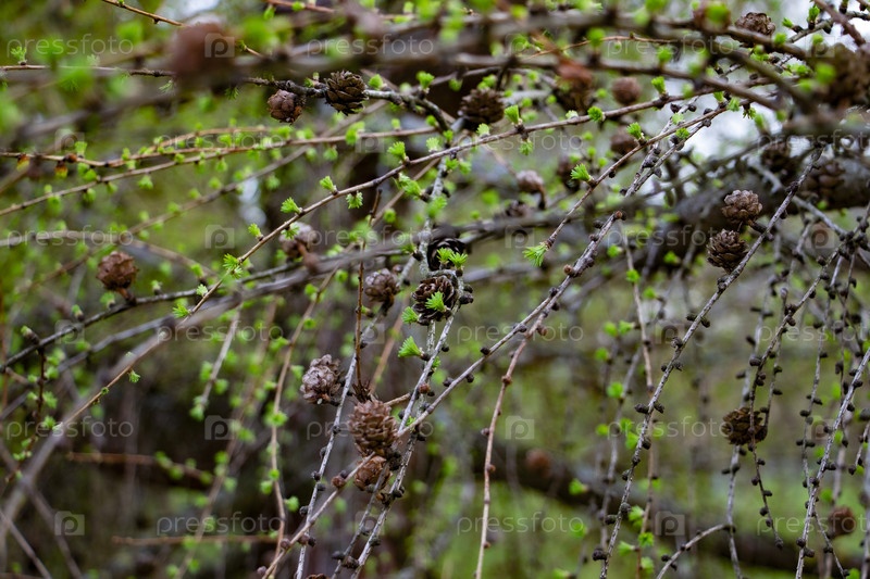 Это листопадное хвойное дерево, иглообразные листья которого выпадают осенью.На картине изображены молодые свежие зеленые иглы с небольшими шишками