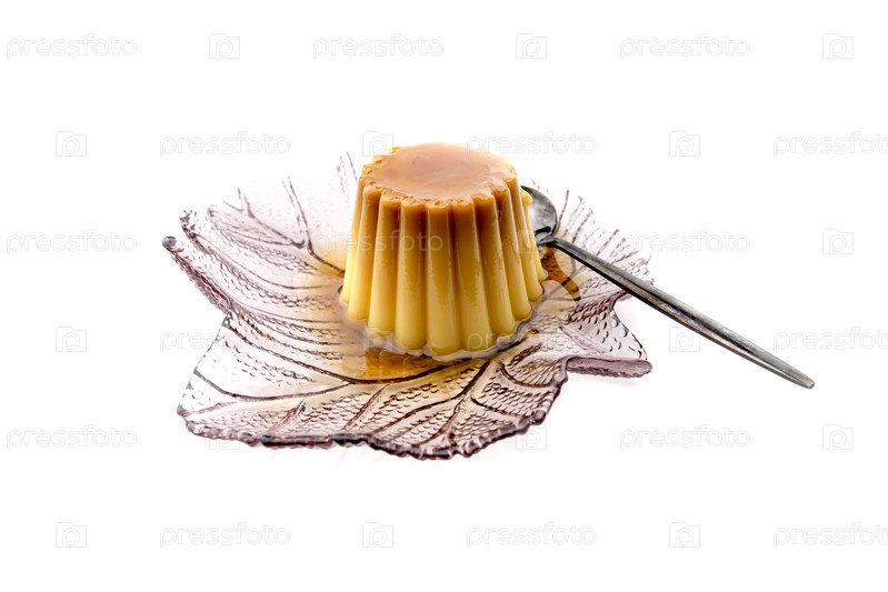 Популярный десерт карамельный крем в ближайшей тарелке