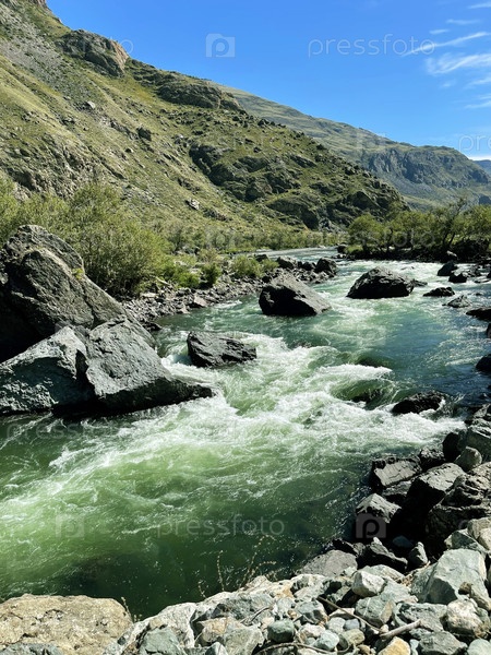 Бурная река Чулышман в долине Чулышман, Алтай, Россия