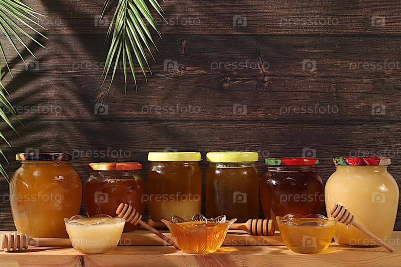 Диапазон луга, лайм, цветок, пчелиный мед и нектар для баннера на медовой ярмарке или продаже меда, различные сорта меда в банки и чашки на кухонном столе