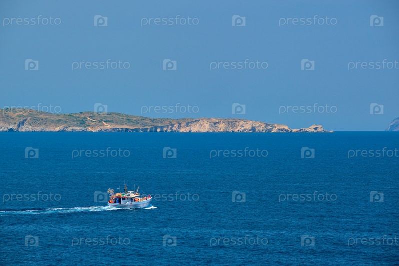 Греческая рыбацкая лодка в Эгейском море недалеко от острова Милос, Греция
