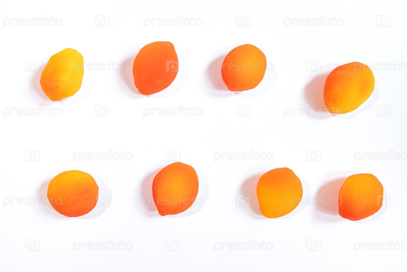 Китайцы сохраняли фрукты Свежие красно-желтые сладкие персики расположены в аккуратный ряд на чистом белом фоне, демонстрируя яркие оттенки и гладкую текстуру для художественного отображения