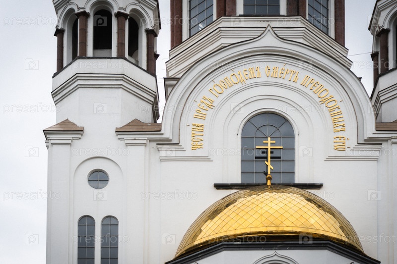 Фасад Храма на Кровь с золотым куполом и крестом, Екатеринбург