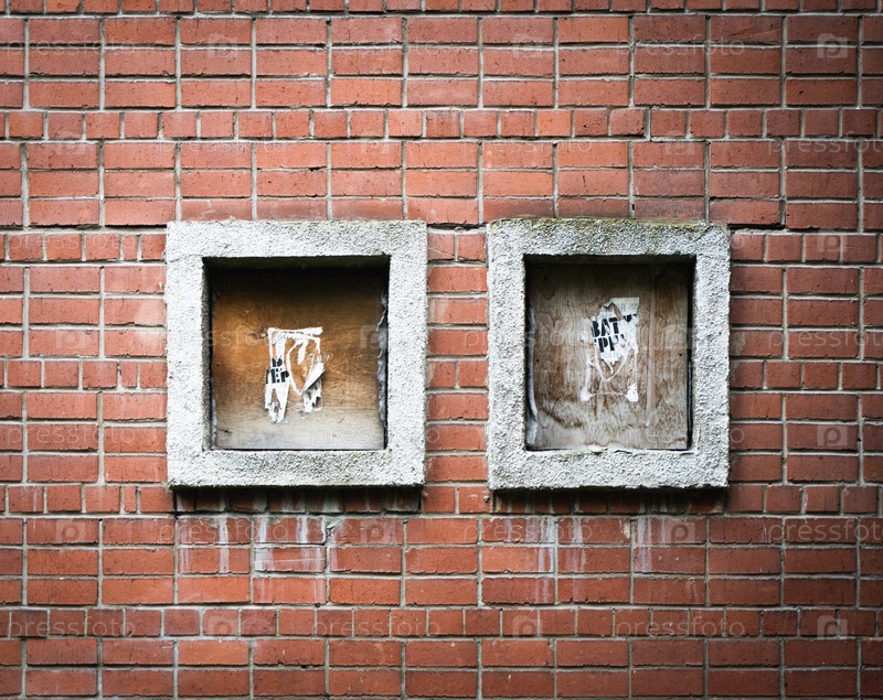 Кирпичная стена с двумя квадратными нишами и остатками плаката