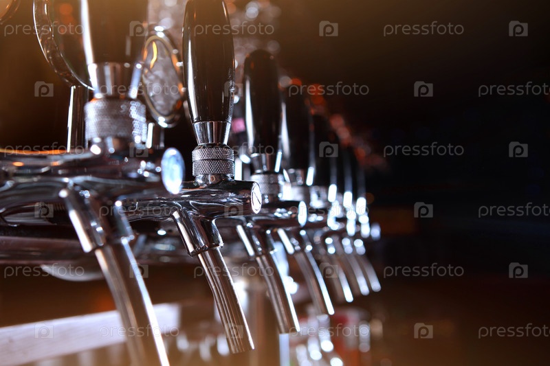Пивный кран из блестящего барного прилавка стальные пивные краны в пабе. пивное ремесло. выборочный трюк. концепция алкоголя