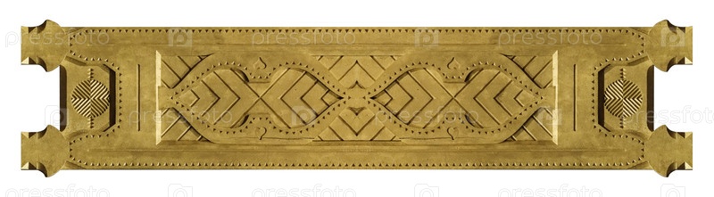 Золотой декоративный элемент с цветочным узором выделен на белом фоне