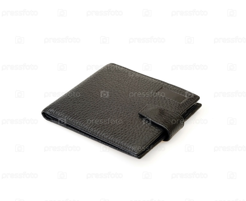 Кожаный черный кошелек изолирован на белом фоне