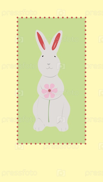 Милая векторная карта с пасхальным кроликом, изолированным на желтом и зеленом фоне