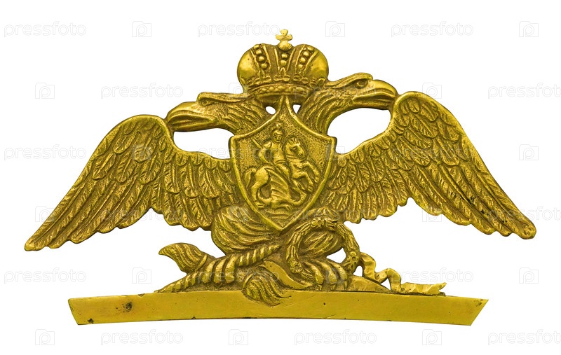 Золотой двуглавый коронованный орел изолирован на белом фоне