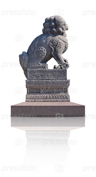 Китайская каменная статуя на гранитном пьедестале изолирована на белом фоне