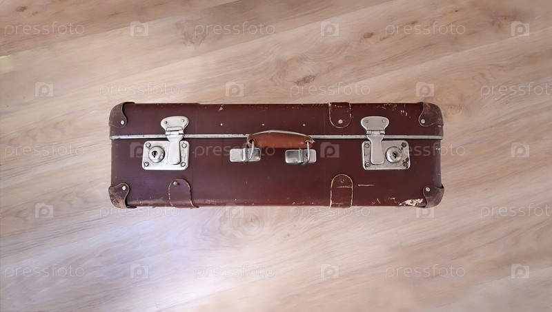 Старый чемодан, изолированный на полу в пустой комнате