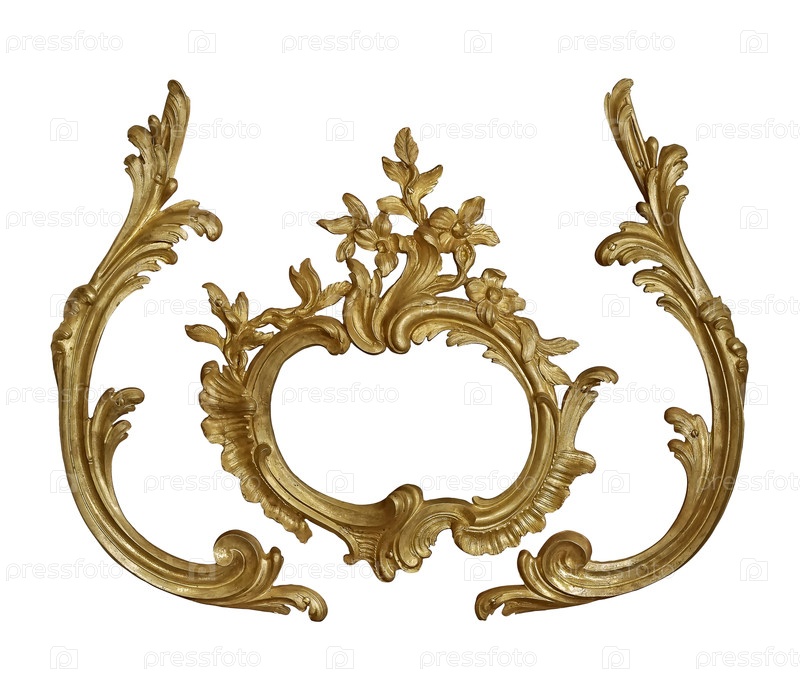 Золотая рама для картин, зеркал или фотографий, изолированных на белом фоне