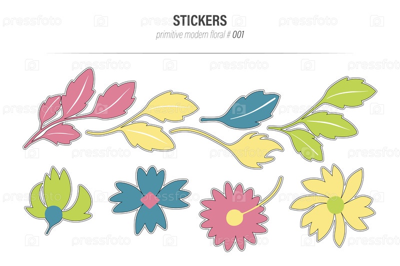 Примитивные современные цветочные наклейки устанавливают векторные иллюстрации