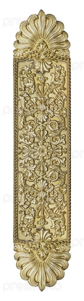 Золотой декоративный элемент с цветочным узором выделен на белом фоне