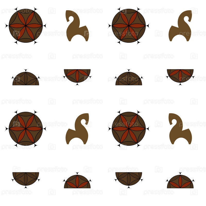 Народный орнамент со стилизованными мотивами лошадей из Северной России
