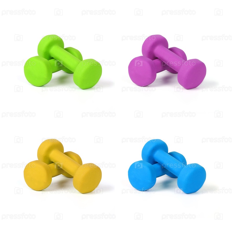 Набор красочных гантелей для фитнеса изолирован на белом фоне