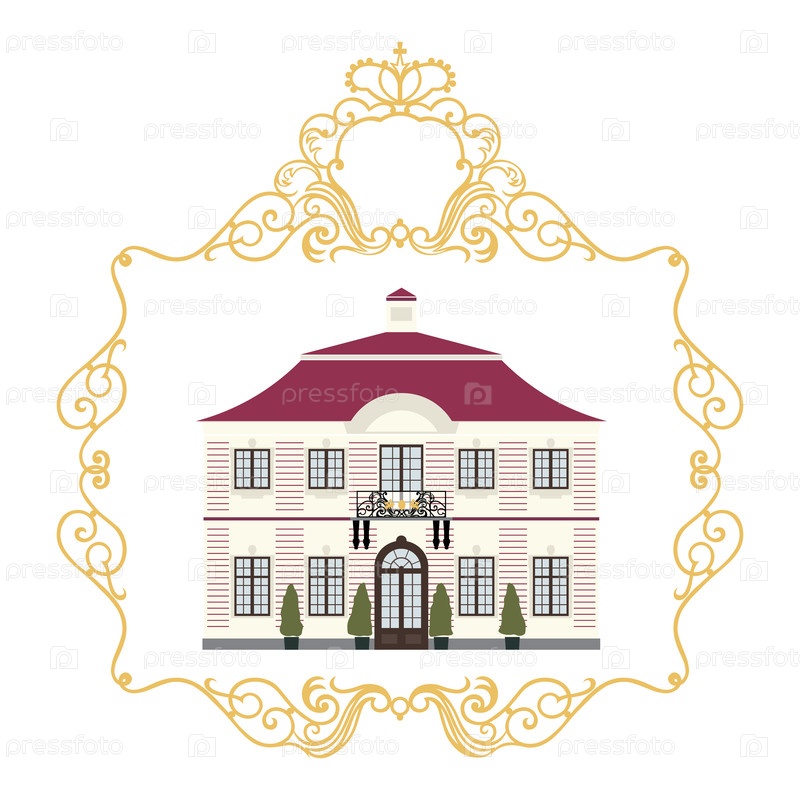 Векторный рисунок дворца 17-го века, изолированного на белом фоне. (Нижний парк Петродворец, дворец Марли, Петерхоф, Санкт-Петербург)