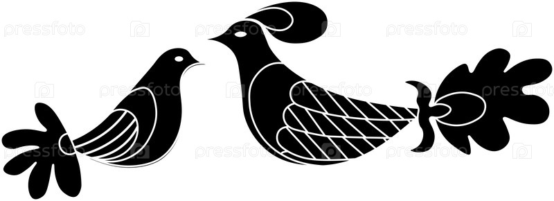 Векторный черно-белый картридж (композиция) с птицами в традиционном народном стиле. изолирован на белом фоне