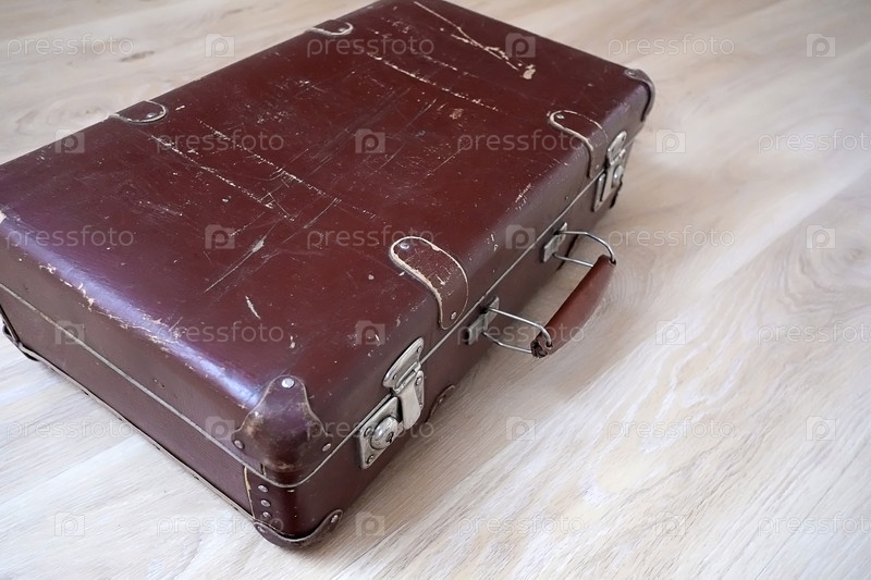 Старый чемодан, изолированный на полу в пустой комнате