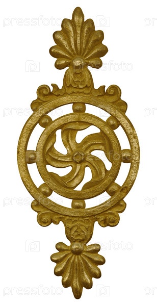 Золотой декоративный элемент с цветочным узором выделен на белом фоне