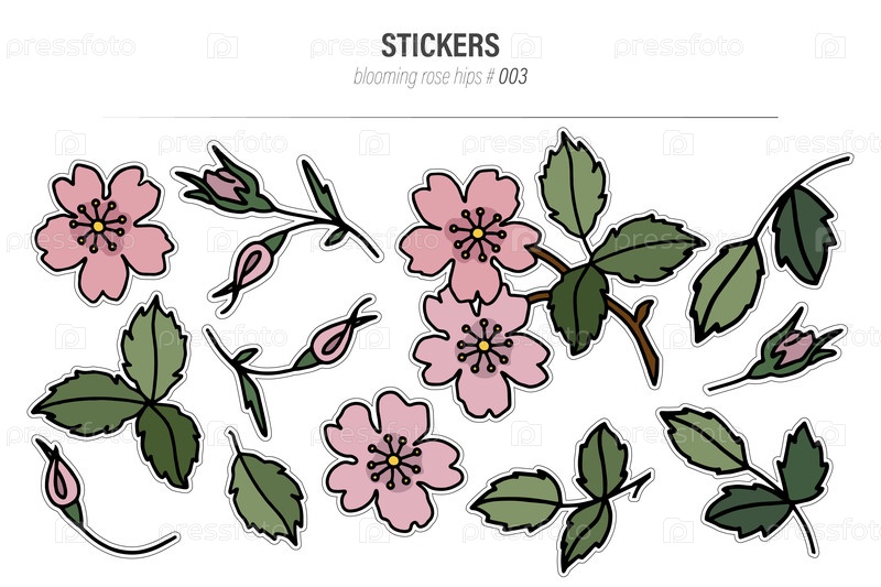 Цветы розового цветка и почки наклейки набор векторных иллюстраций