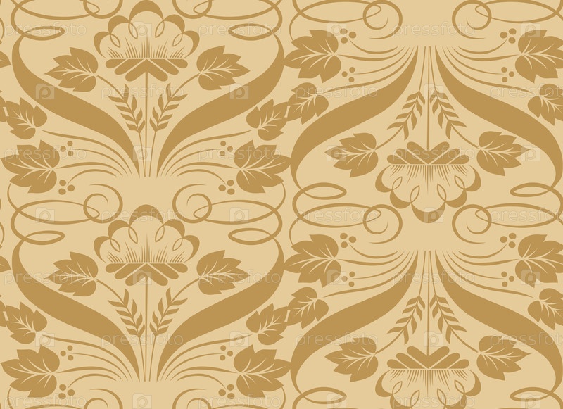 Бесшовный рисунок с дикими цветами, листьями и ветвями