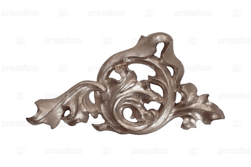 Серебряный декоративный крестовой элемент с цветочным узором выделен на белом фоне