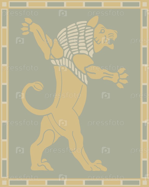 Векторный декоративный элемент лев в ассирийском стиле