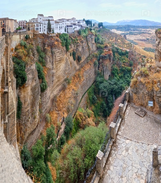 Летний панорамный вид на ущелье Тахо с террасы в Ронде