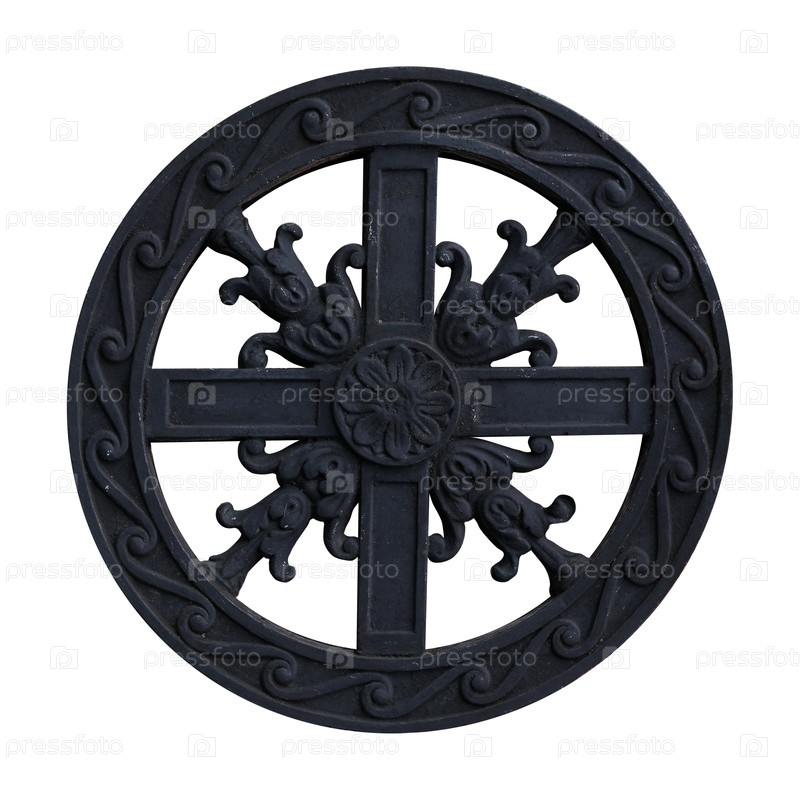 Черно-металлический орнамент с крестом изолирован на белом фоне