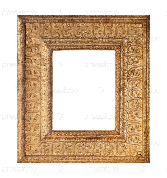 Золотая рама для картин, зеркал или фотографий, изолированных на белом фоне