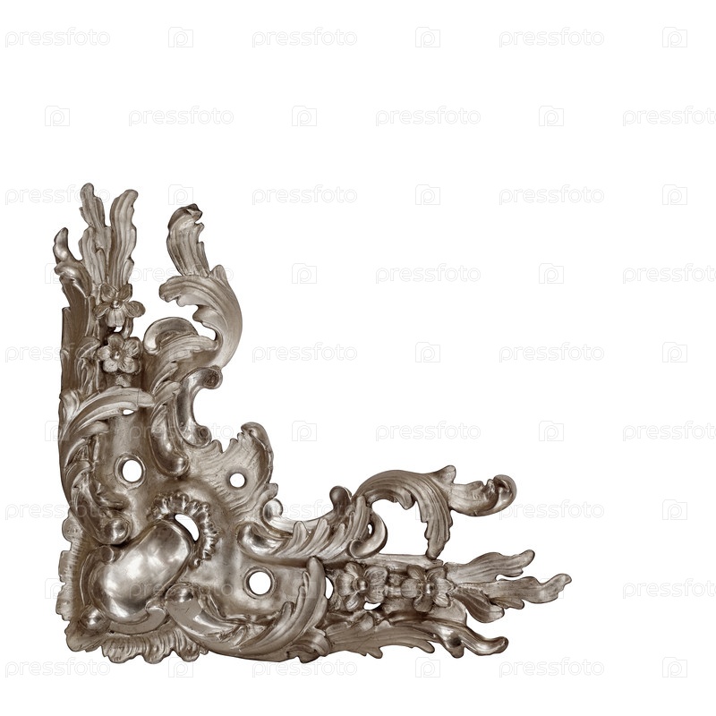 Часть (угол) старой серебряной рамы для картин, зеркал или фотографий, выделенных на белом фоне