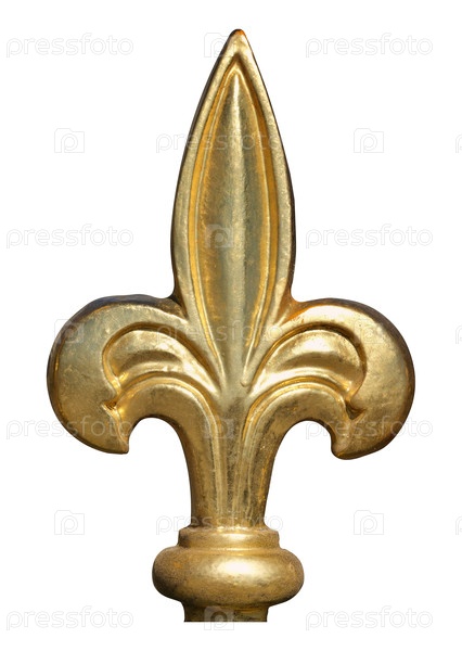 Золотая французская королевская лилия изолирована на белом фоне