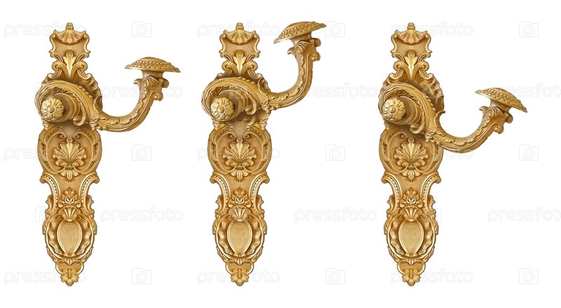Золотая дверная ручка изолирована на белом фоне