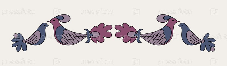 Векторно-цветный картуш (композиция) с птицами в традиционном народном стиле. изолирован на белом фоне