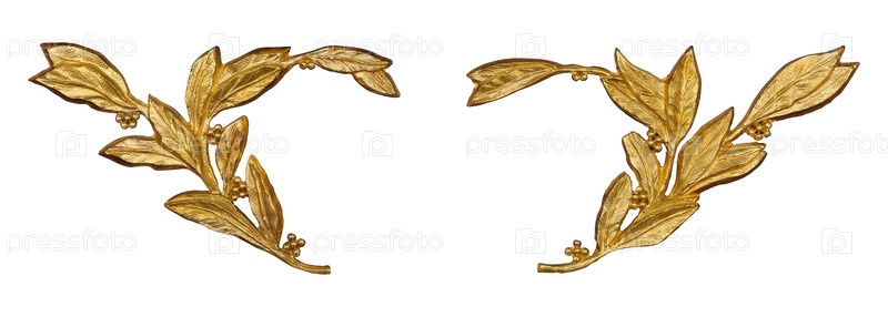 Золотой декоративный элемент с цветочным узором выделен на белом фоне