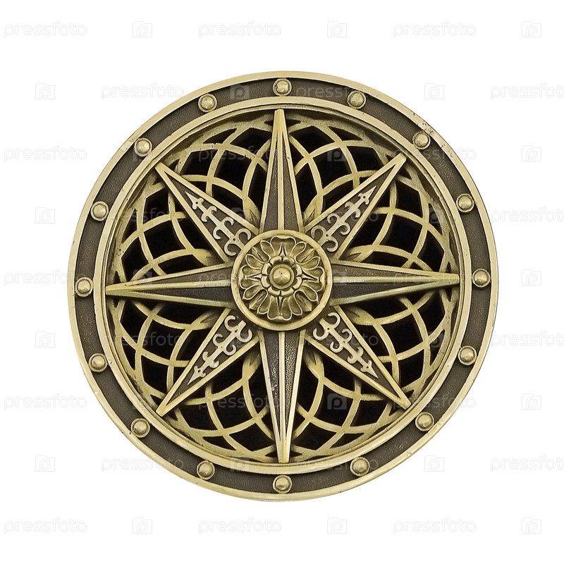 Золотой декоративный элемент (ветряная роза) выделен на белом фоне