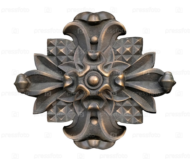 Бронзовый декоративный элемент с цветочным узором выделен на белом фоне