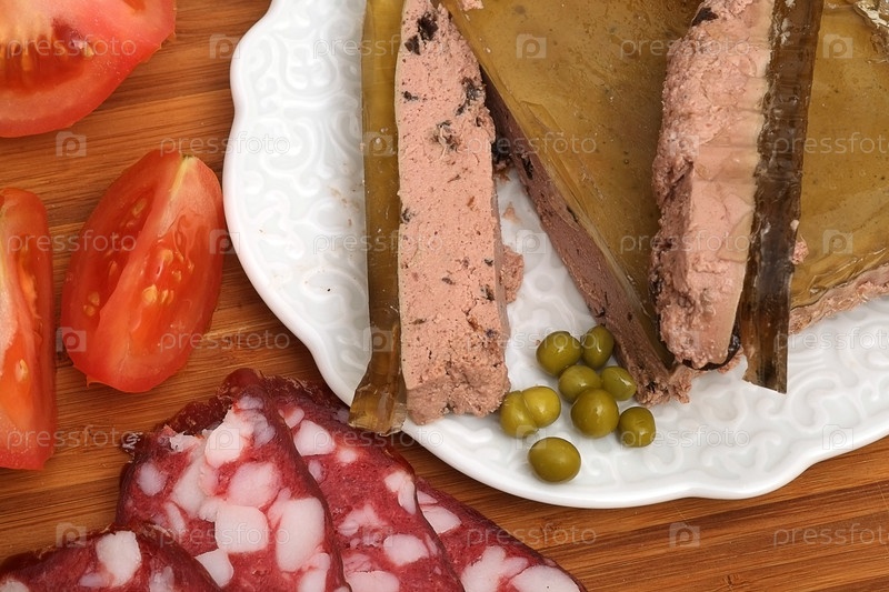 Пастель, помидоры и зеленый горошек на деревянном столе