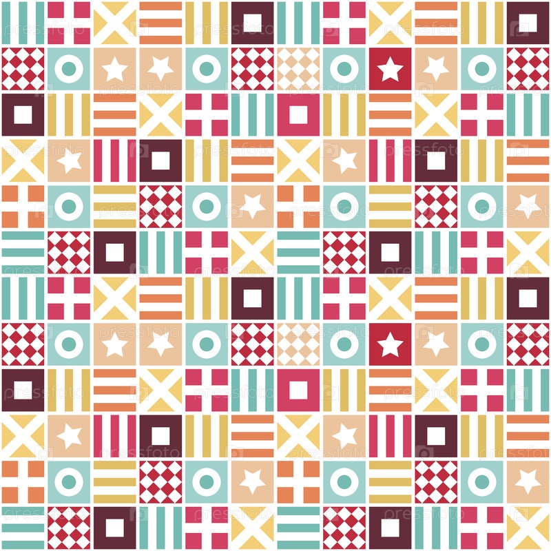 Ретро цирковый геометрический бесшовный векторный рисунок в ярких винтажных цветах