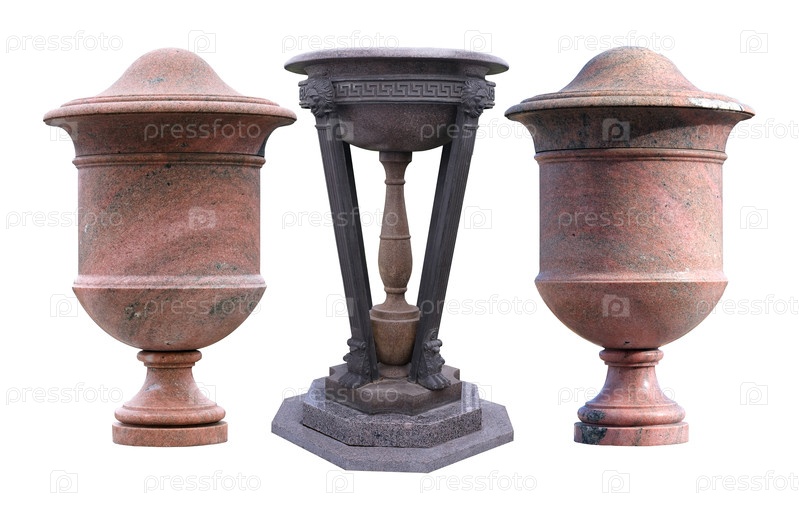 Античная декоративная ваза из камня и бронзового штатива изолирована на белом фоне