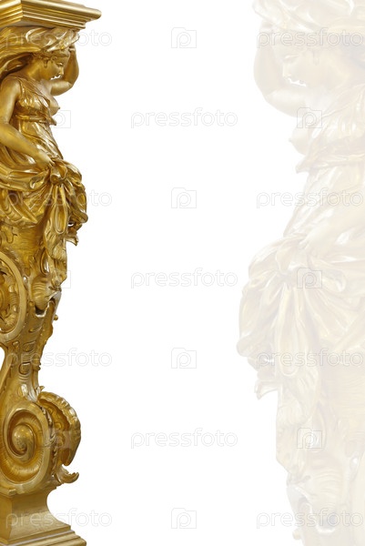 Золотой кариатид, изолированный на белом фоне (древнее божество в архитектуре)
