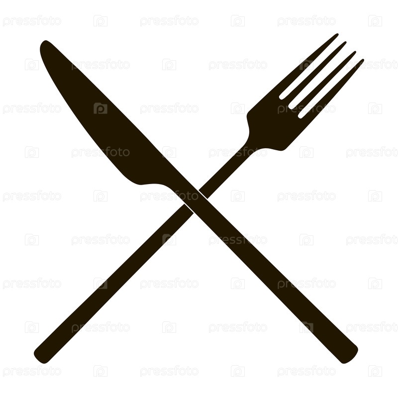 Черно-белый векторный рисунок. скрещенная ложка и вилка