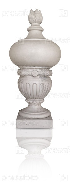 Классическая садовая ваза из белого камня изолирована на белом фоне с отражением. Дизайнерский элемент с обрезкой пути. Очень высокое разрешение