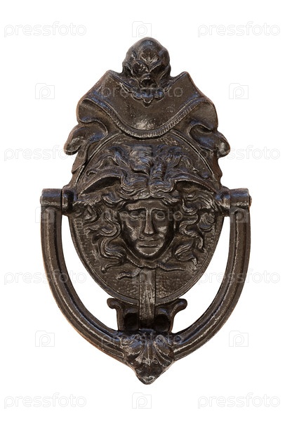 Бронзовая дверная ручка изолирована на белом фоне