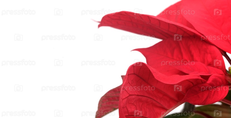 Рождественский баннер с пуансеттией и идеей Счастливого Нового года изолирован на белом фоне, вырезка готова. очень высокое разрешение