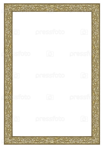 Золотая рама для картин, зеркал или фотографий, изолированных на белом фоне